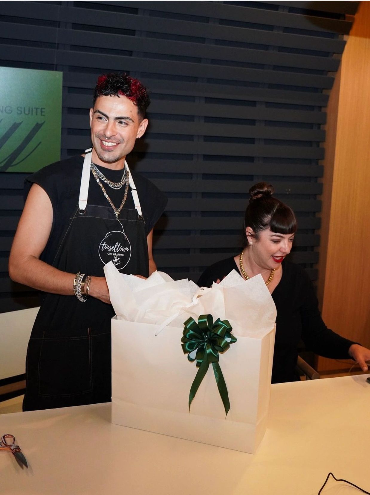 Wrapping gifts for the toy drive Lionsgate hosted at the premiere!